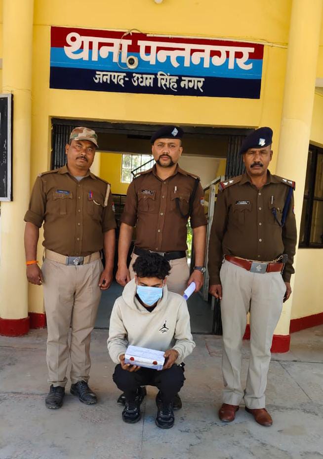 पंतनगर :- वरिष्ठ पुलिस अधीक्षक जनपद उधम सिंह नगर के आदेशानुसार एवं अपर पुलिस अधीक्षक(नगर),क्षेत्राधिकारी पंतनगर एवं प्रभारी निरीक्षक थाना पंतनगर के निर्देश पर अवैध मादक पदार्थो की तस्करी की रोकथाम,आगामी लोकसभा चुनाव 2024 के दिशा निर्देशो का पालन कराने हेतू थाना पंतनगर पुलिस द्वारा लगातार चैकिंग अभियान चलाया जा रहा है दिनांक 14/03/2024 की सायं पुलिस टीम द्वारा दौराने वाहन चैकिंग वाहन कार ट्रीबर रंग सफेद जिस पर UK04TB5832 को रोकने का ईशारा किया गया परंतु भागने लगा जिसे पुलिस टीम द्वारा पारले चौक से पहले घेर घोटकर इंटरपम्प कम्पनी सिडकुल के पास पकड लिया । गाडी में चालक की सीट के नीचे मैट के नीचे से एक पारदर्शी पन्नी के अन्दर काले रंग का बत्तीनूमा चरस कुल 520 ग्राम बरामद हुई पूछताछ के दौरान अभियुक्त ने अपना नाम मनीष कुमार पुत्र दयाराम निवासी तल्ला भैसकोट थाना नाचनी जिला पिथौरागढ़ उम्र 24 वर्ष बताया अभियुक्त द्वारा चरस को दिल्ली लेजाकर बेचना बताया गया । अभियुक्त को समय 20.20 बजे गिरफ्तार किया गया । अभियुक्त के विरुध थाना पंतनगर में मुकदमा पंजीकृत किया गया । अभियुक्त को माननीय न्यायालय पेश किया जा रहा है।