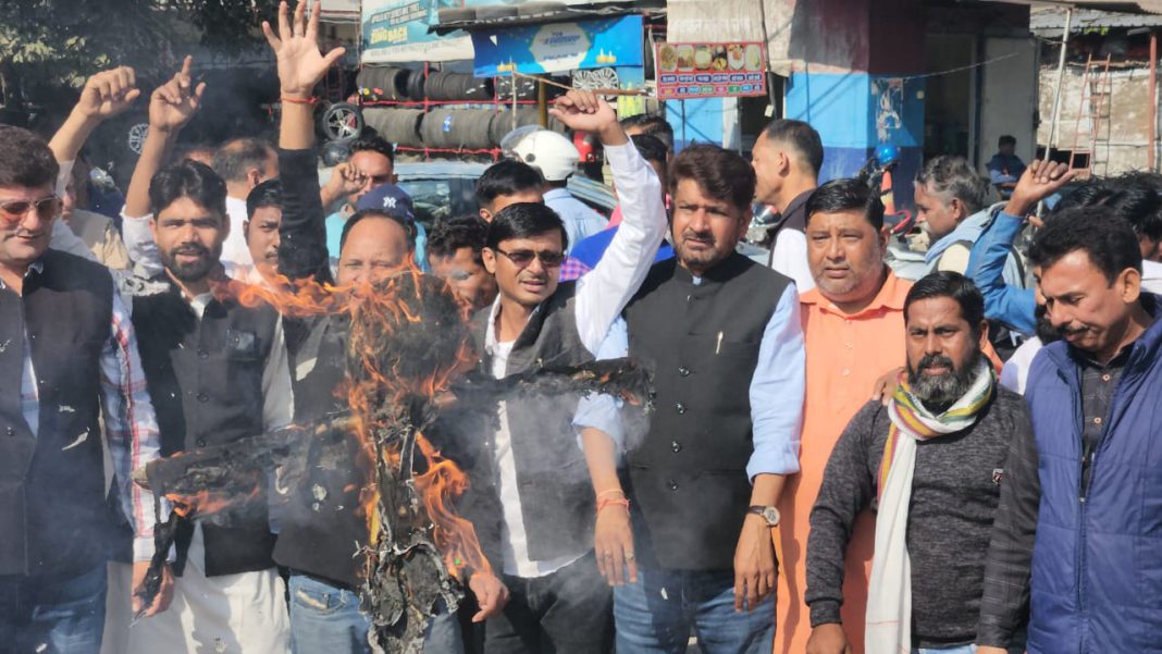 कांग्रेस के प्रदेश अध्यक्ष करन माहरा के आह्वान पर कांग्रेस के कार्यकर्ताओं ने महानगर अध्यक्ष सीपी शर्मा के नेतृत्व में डीडी चौक पर फूंका भाजपा सरकार का पुतला