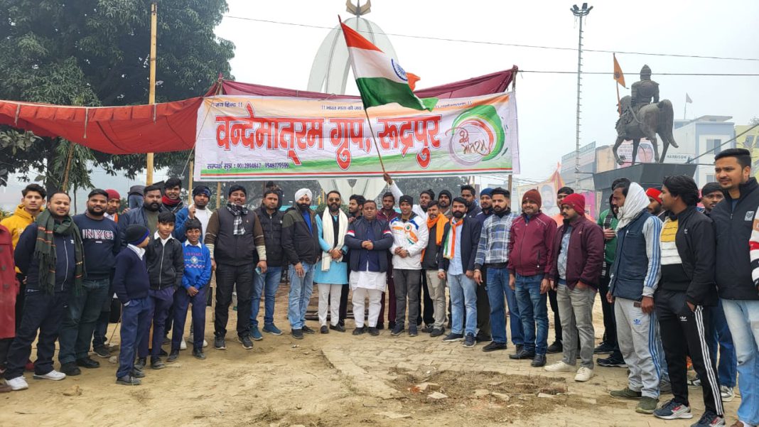 रुद्रपुर :- गणतंत्र दिवस के अवसर पर भाजपा आर्थिक प्रकोष्ठ के प्रदेश सहसंयोजक भारत भूषण चुघ ने विभिन्न विद्यालयों में ध्वजारोहण किया और गणतंत्र दिवस के इस पावन पर्व पर सभी को शुभकामनाएं दी। उन्होंने तिलक राज कपूर सरस्वती शिशु मंदिर, प्राथमिक विद्यालय खेड़ा और भंजु राम इंटर कॉलेज भूरारानी में ध्वजारोहण किया। अपने संबोधन में चुघ ने कहा कि गणतंत्र दिवस देश की गौरवशाली परंपरा रही है जहां देश के वीर जवान आज कर्तव्य पथ पर देश की आन बान शान के साथ अपनी शक्ति का प्रदर्शन कर रहे हैं ।उन्होंने कहा भारत देश आज नई ताकत के रूप में पूरी दुनिया के सामने नजर आ रहा है। उन्होंने कहा कि पूरे देश में आज 75वां गणतंत्र दिवस मनाया जा रहा है। इस गणतंत्र दिवस के लिए तमाम जवानों ने अपना बलिदान दिया है तभी आज हम लोग आजादी की सांस ले रहे हैं। उन्होंने कहा कि आज की युवा पीढ़ी को राष्ट्रहित को लेकर अपने कर्तव्यों को समझना होगा और राष्ट्र को मजबूत करने के लिए और एक सुदृढ़ और सशक्त भारत बनाने के लिए पूरी कर्तव्य निष्ठा के साथ अपने दायित्वों का निर्वहन करना होगा ।उन्होंने कहा आज का देश युवाओं का देश है और आने वाला कल भी युवाओं का होगा ऐसे में सभी को हर क्षेत्र में अपना-अपना सहयोग देना होगा। उन्होंने कहा कि शिक्षा के साथ-साथ युवाओं को देशहित में भी अपनी संपूर्ण सहभागिता निभानी चाहिए। गांधी पार्क में भी वंदे मातरम ग्रुप द्वारा गणतंत्र दिवस का कार्यक्रम आयोजित किया गया । जहां वंदे मातरम ग्रुप के संजय आर्य के साथ चुघ ने ध्वजारोहण किया और सभी को आवाहन किया कि युवा आने वाले कल की पहचान है और जिस प्रकार से वंदे मातरम ग्रुप राष्ट्र के लिए कार्य कर रहा है वह बेहद सराहनीय है ऐसे में युवाओं को वंदे मातरम ग्रुप से प्रेरणा लेकर सदैव जनहित व राष्ट्र हित में कार्य करने चाहिए।इस दौरान भंजू राम इंटर कॉलेज भूरारानी तथा अमर इंटरनेशनल स्कूल के प्रबंधक सुरेश गांधी, एस एस गंगवार ,बलदेव राज छाबड़ा,राज कोलो वंदे मातरम ग्रुप रुद्रपुर संजय कुमार संस्थापक सट्टा कोली दिनेश परिहार विशाल हिमांशु जोशी अमित मनदीप दिनेश दमन गोविंद नितिन भाई अंकित विशेष भाई हरविंदर चौक गोल्डी भैया विराट भाई राम भाई अशोक भाई अमन भारत आदर्श अभय प्रिंस भगवान प्रसाद, माधवी द्विवेदी, फरदीन खान, लालता प्रसाद, प्रीति सरकार, पिंटू पाल ,गुड्डू पासवान, रामचंद्र शर्मा, आशा अरोड़ा, अनु यादव, पुष्पा ढाली, रागिनी शर्मा, ललिता देवी ,समेत विद्यालय के तमाम शिक्षक और शिक्षिकाएं मौजूद थे।