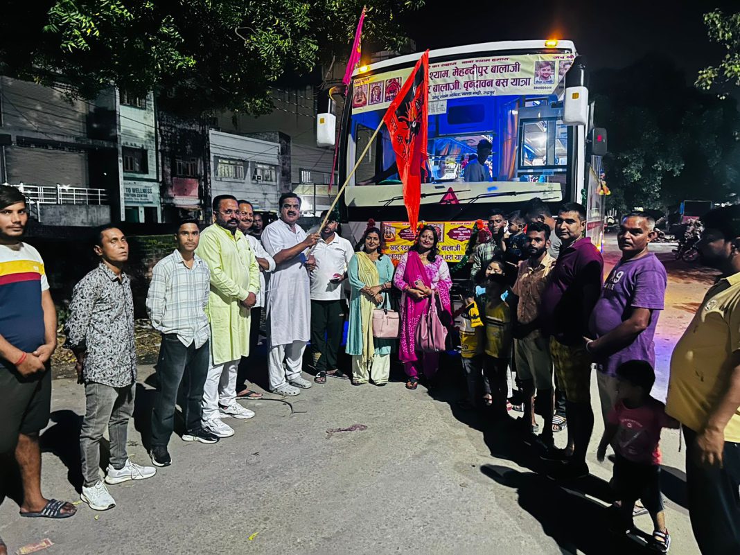 गल्ला मंडी स्थित श्याम मंदिर से राजस्थान खाटू श्याम धाम मेहंदीपुर बालाजी धाम सालासर वृंदावन के लिए श्रद्धालुओं की बस को पूर्व विधायक राजकुमार ठुकराल ने केसरिया झंडा दिखाकर रवाना किया