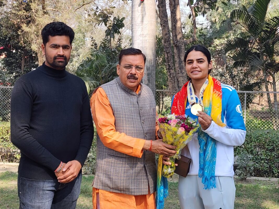 इस अवसर पर उन्होंने कहा, “उत्तराखंड में पहली बार राष्ट्रीय खेलों का आयोजन हुआ है, और हमारी बेटियों ने पूरे जोश और हौसले के साथ इसमें भाग लिया है। प्रधानमंत्री जी के ‘बेटी बचाओ, बेटी पढ़ाओ’ संकल्प को साकार करते हुए पूजा ने यह सिद्ध कर दिया कि अब बेटियां किसी भी क्षेत्र में पीछे नहीं हैं। यह केवल उनके परिवार के लिए नहीं, बल्कि पूरे प्रदेश के लिए गर्व का क्षण है।”प्रदेश के मुख्यमंत्री पुष्कर सिंह धामी के नेतृत्व में उत्तराखंड में खेलों को बढ़ावा देने के लिए कई महत्वपूर्ण पहल की गई हैं। पहली बार राज्य में राष्ट्रीय खेलों का सफल आयोजन करवाकर उन्होंने उत्तराखंड को खेलों के नए केंद्र के रूप में स्थापित किया है। सरकार द्वारा खिलाड़ियों के लिएबेहतर प्रशिक्षण सुविधाएं, आर्थिक सहयोग और खेल अधोसंरचना को मजबूत किया जा रहा है, जिससे राज्य के युवा अपने सपनों को साकार कर सकें। मुख्यमंत्री धामी ने कई बार कहा है कि उत्तराखंड के युवा देश और दुनिया में खेलों के क्षेत्र में अपनी अलग पहचान बनाएंगे, और पूजा यादव की यह उपलब्धि इस संकल्प को और मजबूत करती है। उन्होंने इस जीत पर पूजा यादव और उनके परिवार को बधाई देते हुए कहा कि, “उत्तराखंड की बेटियां हर क्षेत्र में परचम लहरा रही हैं, यह हम सभी के लिए गर्व की बात है। राज्य सरकार हर संभव प्रयास कर रही है कि हमारे युवा खिलाड़ियों को विश्वस्तरीय सुविधाएं मिलें, ताकि वे अंतरराष्ट्रीय स्तर पर भी प्रदेश का नाम रोशन कर सकें।”