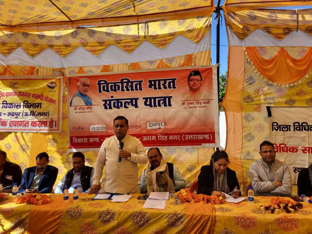 ग्राम दानपुर में विकसित भारत संकल्प यात्रा कार्यक्रम के तहत मोदी गारंटी प्रचार वाहन कार्यक्रम में विकसित भारत संकल्प यात्रा के विधान सभा क्षेत्र के संयोजक एवं भाजपा आर्थिक प्रकोष्ठ के प्रदेश सह संयोजक भारत भूषण चुघ के साथ भाजपा जिला प्रभारी पुष्कर सिंह काला के साथ विभिन्न विभागीय अधिकारियों द्वारा उपस्थित ग्रामीणों को केन्द्र तथा प्रदेश सरकार द्वारा जनहित में चलाई जा रही कल्याणकारी योजनाओं की विस्तार से दी गई जानकारी