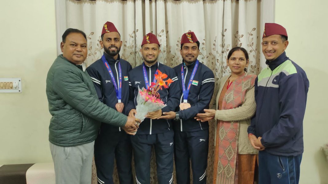 थाइलैण्ड में आयोजित वर्ल्ड एबिलिटी डिसेबल्ड स्पोर्ट्स गेम में पदक जीतकर लौटे शहर के दिव्यांग खिलाड़ियों तथा कोच का निवर्तमान मेयर रामपाल सिंह ने अपने आवास पर पुष्प गुच्छ देकर स्वागत किया