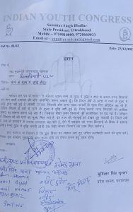 रुद्रपुर। प्रदेश अध्यक्ष यूथ कांग्रेस सुमित्र भुल्लर ने मुख्यमंत्राी पुष्कर सिंह धामी के नाम जिला अधिकारी उधम सिंह नगर के माध्यम से ज्ञापन सौंपा।