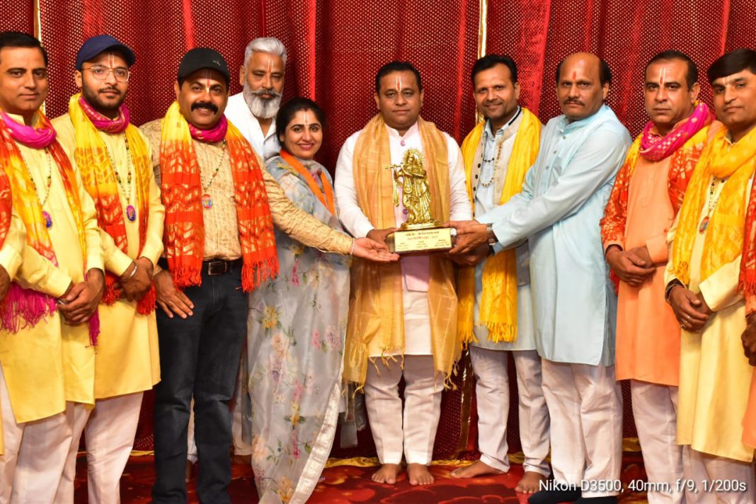 श्री शिव नाटक क्लब द्वारा सभी अतिथियों का पटका ओढ़ाकर एवं बैच लगाकर सम्मानित किया गया एवं अतिथियों को स्मृति चिन्ह भेंटकर सम्मानित किया गया अतिथि सपरिवार कनिका चुघ नमन चुघ आयुष गर्ग