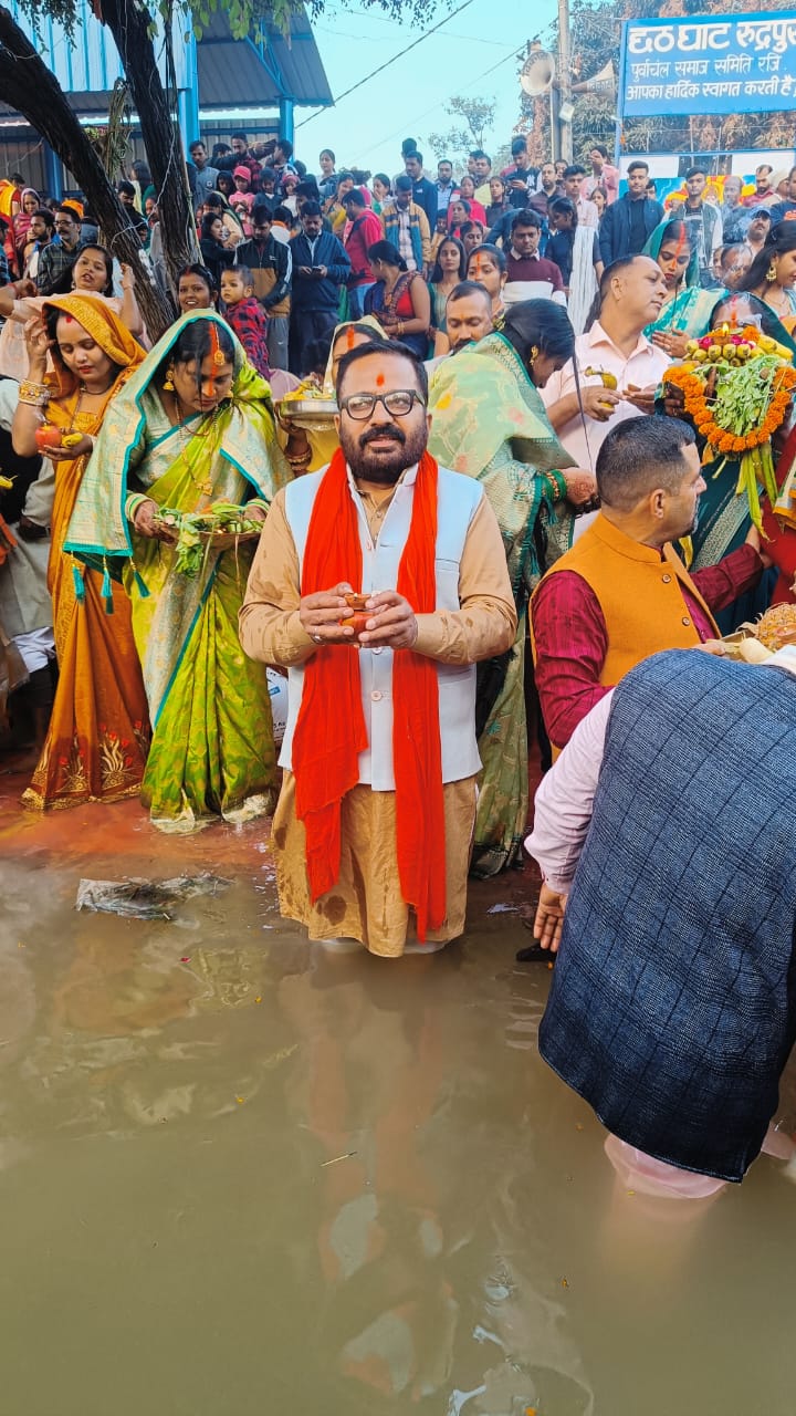 समाजसेवी संजय ठुकराल ने रविन्द्र नगर में कल्याणी नदी पर पहुंच कर छठ पूजा घाट में छठ पूजा का विधिवत पूजा अर्चना कर छठ मैया से सभी के लिए सुख समृद्धि की कामना की