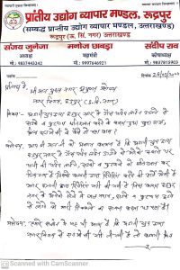 रुद्रपुर :- प्रांतीय उद्योग व्यापार मंडल रुद्रपुर द्वारा मुख्य नगर आयुक्त के नाम उप नगर आयुक्त शिप्रा जोशी को ज्ञापन सौंपा गया.