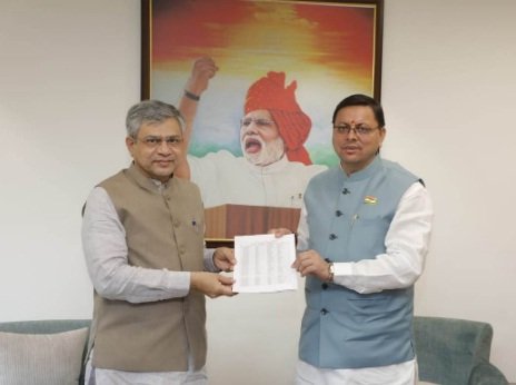 नई दिल्ली। मुख्यमंत्री पुष्कर सिंह धामी ने शनिवार को नई दिल्ली में केंद्रीय मंत्री, रेल, संचार, इलेक्ट्रॉनिक्स व सूचना तकनीक ...