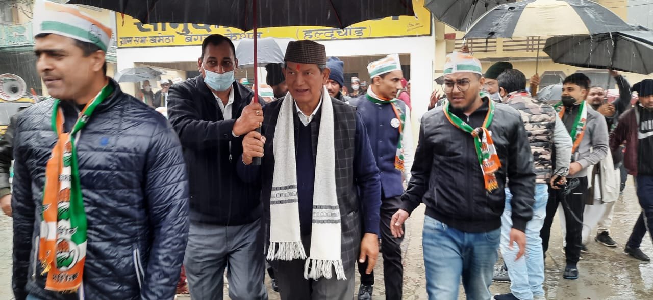 भारी बारिश के बीच पूर्व मुख्यमंत्री हरीश रावत ने सुबह से ही शुरू किया चुनाव प्रचार