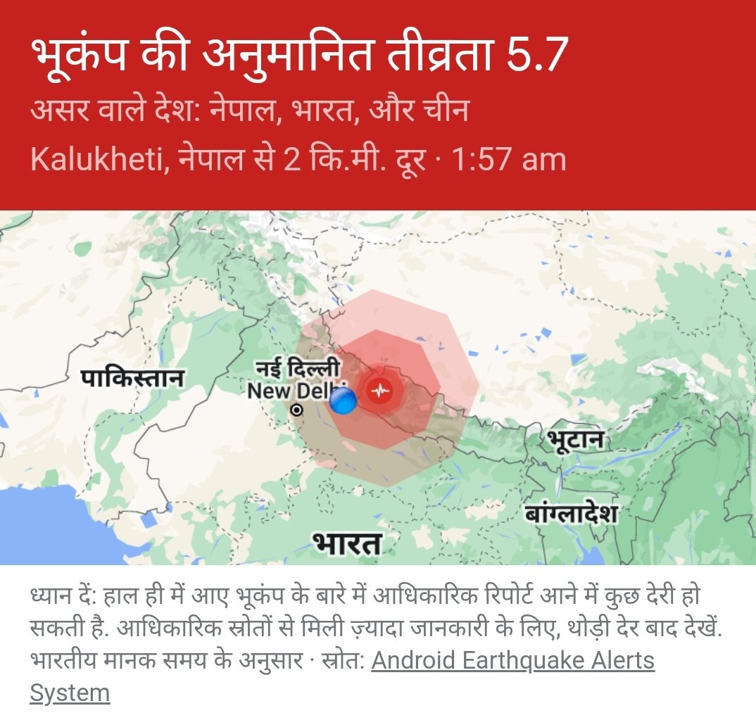 शहर में लोग तत्काल घरों से बाहर सड़कों पर दिखाई दिए। लगभग 5 सेकंड तक दो बार बड़ी ही तेजी के साथ यह झटके महसूस किए गए। हालांकि अभी यह नहीं पता चल सका है कि इस भूकंप के झटकों से कितना नुकसान हुआ है।भूकंप का केंद्र नेपाल था। भूकंप की तीव्रता 5,7 बताई गई है।