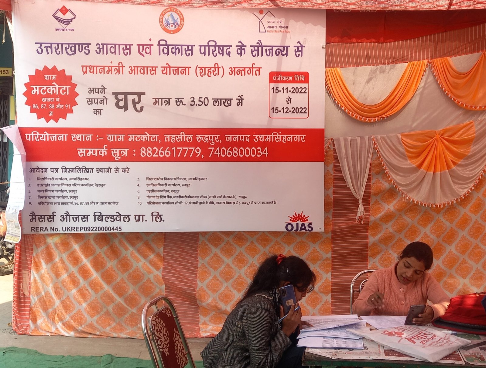 गौरतलब है कि मैसर्स औजस टाउनशिप प्राइवेट लिमिटेड दिल्ली का बिल्डर है। उसने डीडी चौक पर पंजाब एंड सिंध बैंक के बाहर एक कैंप लगा रखा है। जहां लोगों को बताया जा रहा है कि उत्तराखंड आवास एवं विकास परिषद के सौजन्य से प्रधानमंत्री आवास योजना शहरी के अंतर्गत साढ़े तीन लाख में घर उपलब्ध है, जो क्षेत्र के ग्राम शिमला पिस्तौर में मिलेगा। इस योजना का पंजीकरण शुल्क पांच हजार रुपए रखा गया है। पंजीकरण की अंतिम तारीख 15 दिसंबर रखी गई है। घर चूंकि लोगों का सपना होता है, इसीलिए लोग पांच हजार रुपए जमा करा रहे हैं। परियोजना में भाग लेने के लिए आवेदन के लिए जिलाधिकारी कार्यालय, नगर निगम रुद्रपुर समेत दस स्थान दर्शाए गए हैं। प्रचार सामग्री पर उत्तराखण्ड सरकार का लोगो भी इस्तेमाल किया गया है। पांच हजार रुपए जमा कराकर ब्रोशर दिया जा रहा है।