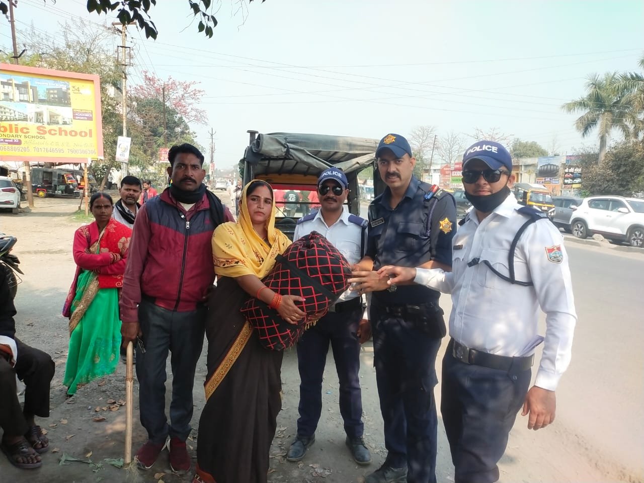 आज इंद्रा चौक पर ड्यूटी में कार्यरत सीपीयू कांस्टेबल गणेश धपोला, ट्रैफिक कर्मी कांस्टेबल चंदन बिष्ट व कॉन्स्टेबल विजेंद्र बुंगला द्वारा गीता पत्नी दीनानाथ निवासी ढोरा डाम, नजीबाबाद का बैग जिसमें कुछ कीमती जेवरात तथा कपड़े किच्छा से रुद्रपुर आने वाले टैंपो मैं छूट गए थे। गीता और उनका परिवार बहुत परेशान थे। उपरोक्त कर्मियों द्वारा अथक परिश्रम से टैंपो का पता लगाकर वह बैग सकुशल परिवार को सुपुर्द किया।