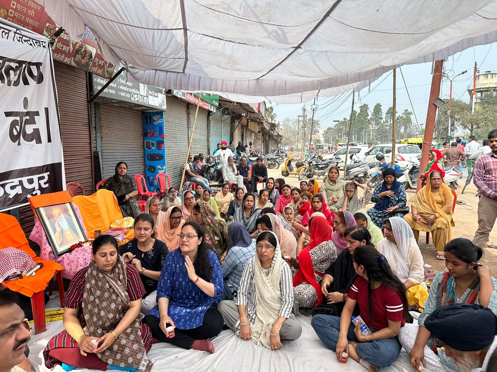 प्रशासन के खिलाफ संघर्ष का बिगुल, महिलाएं उपवास पर, सभी दलों के नेता व्यापारियों के साथ