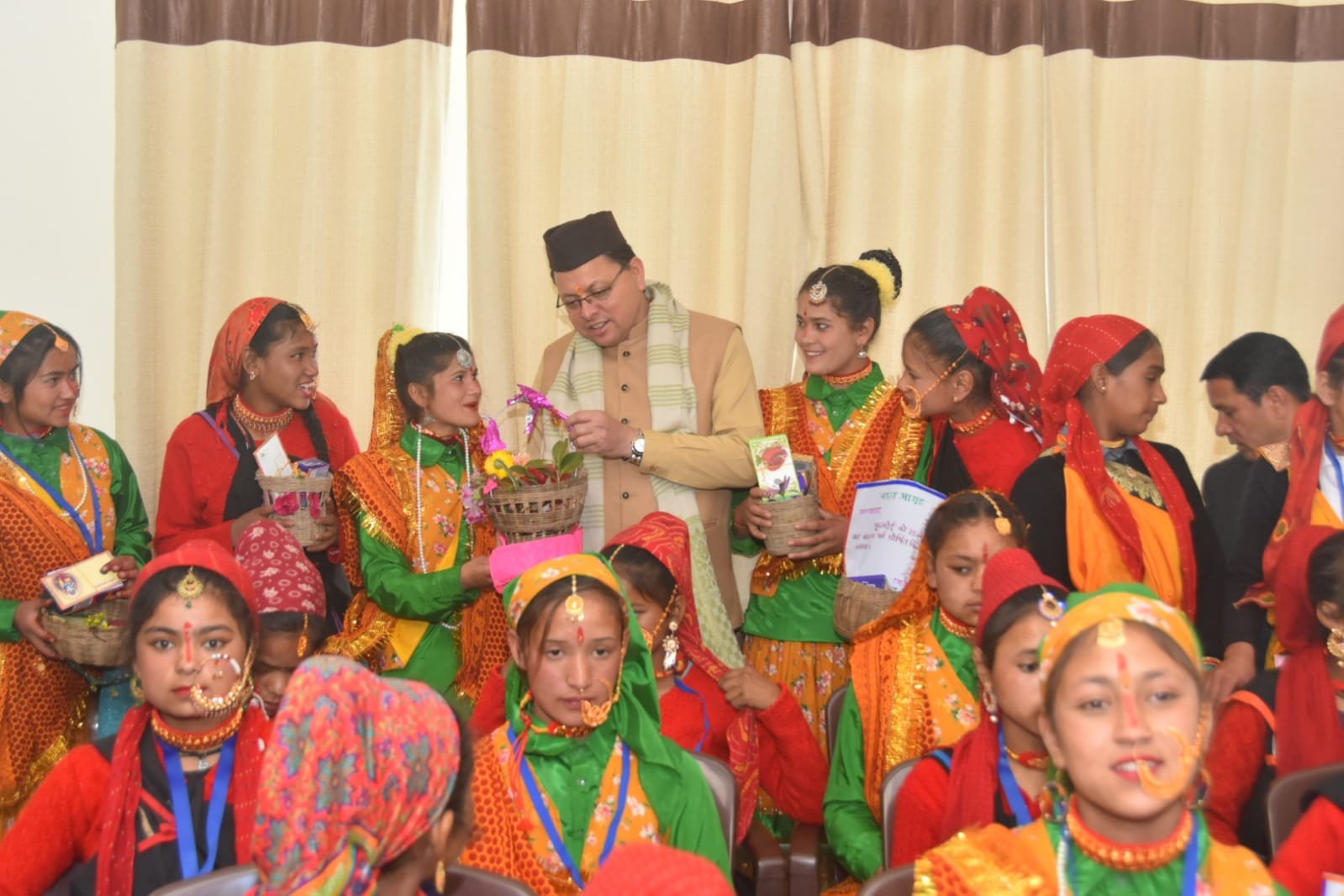 सीएम पुष्कर सिंह धामी ने बच्चों संग भराड़ीसैंण में मनाया लोकपर्व फूलदेई