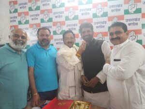 विरोध को दरकिनार कर कांग्रेस अध्यक्ष करन माहरा ने सीपी शर्मा को सौंपा नियुक्तिपत्र और खिलाई मिठाई
