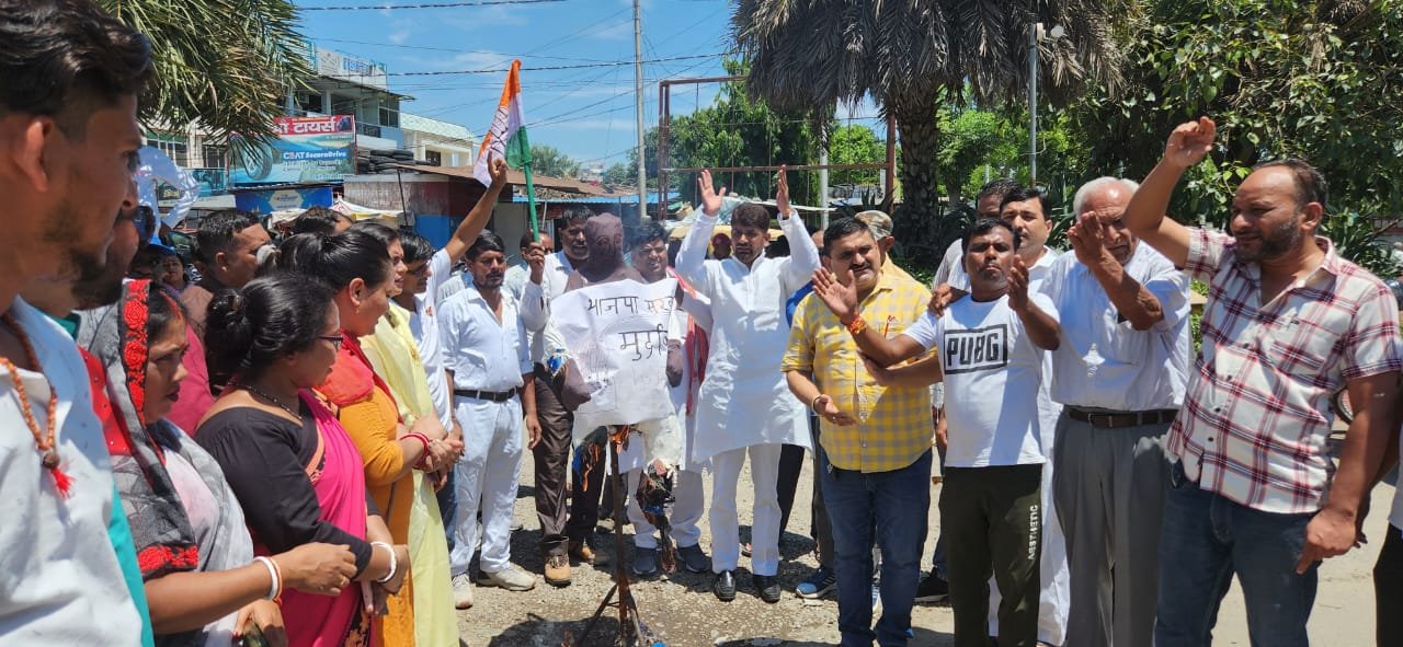 चमोली हादसे को लेकर कांग्रेसियों ने फूंका सरकार का पुतला