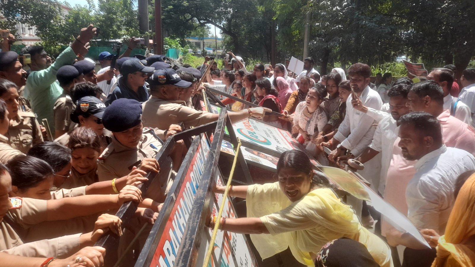 कांग्रेस की महिला कार्यकताओं के तेवर से पुलिस के छूटे पसीने, तीखी झड़प, एसएसपी को बुलाना पड़ा वार्ता के लिए