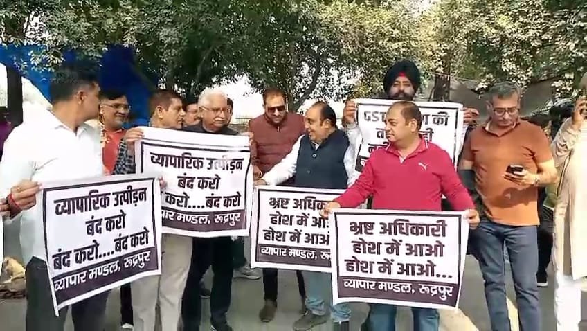 रुद्रपुर में राज्य कर विभाग के खिलाफ व्यापारियों का उग्र प्रदर्शन, कार्यालय घेराव कर अनिश्चितकालीन आंदोलन की दी चेतावनी